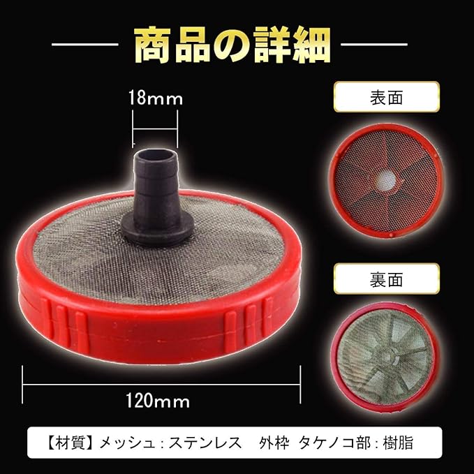 【サイズ】本体外形120mm 樹脂製タケノコ外形:18mm タケノコ部分カラー:ブラックもしくはレッド(商品出荷の時期によりランダム) 【材質】メッシュ:ステンレス 外枠 タケノコ部:樹脂 当商品は.プライム対象商品になります。国内.倉庫より発送されるので、お手元にすぐ届きます。