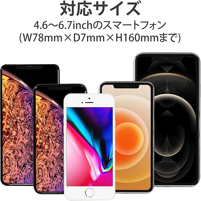 対応デバイス 4.6~6.7インチのスマートフォン(W78mm D7mm H160mmまで)
