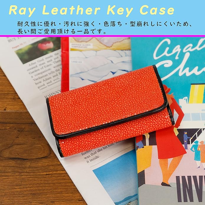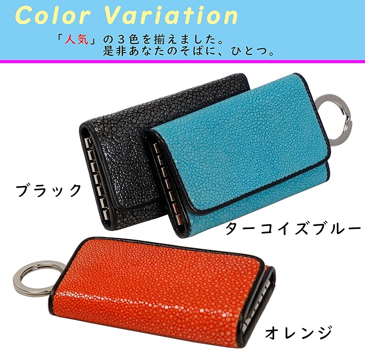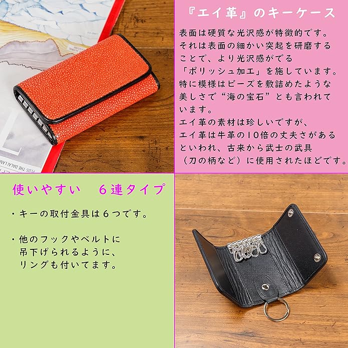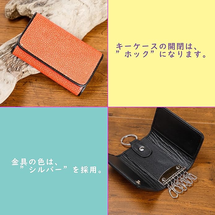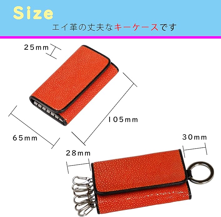 【素材】ガルーシャレザー(エイ革) 【サイズ】H 65mm W 105mm D 25mm 【重さ】約90g 【金具】6連タイプ