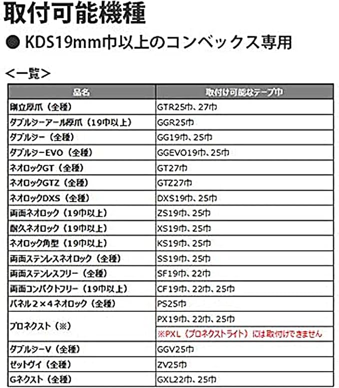仕様:19mm幅以上のKDSコンベックス専用