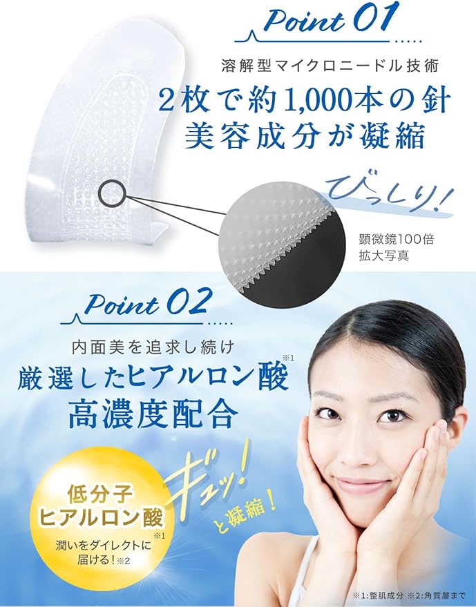 ✅【目元、口元の印象が気になるか方への集中ケア】高濃度のヒアルロン酸をギュッと針状に濃縮されたニードパッチが目元 口元 の気になるポイントにアプローチ 年齢より高く見られることが多い、目元、目の下、口元のぷっくりやハリ、ほうれい線が気になる。こんな方にお勧めです 美容大国、韓国で生産しているこちらの商品は他社製品の日本製や中国製に比べ、針感と密着感を実感していただけると思いますのでぜひ一度お試しください。