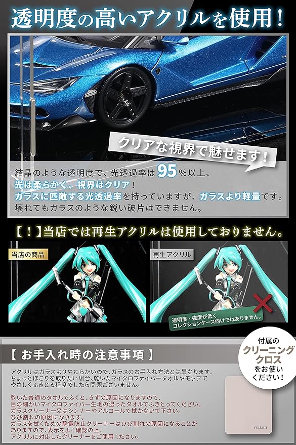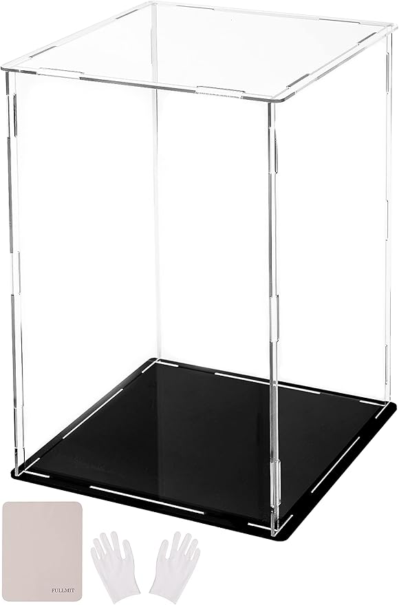 【選べるサイズ】フルミット フィギュアケース アクリル コレクションケース 高透明度 【UVカット】 透明収納ケース 組み立て 簡単 防汚れ 手袋 クリーニング クロス付き お手入れ方法 説明書 (縦15 x 横15 x 高25cm) | oioioichan