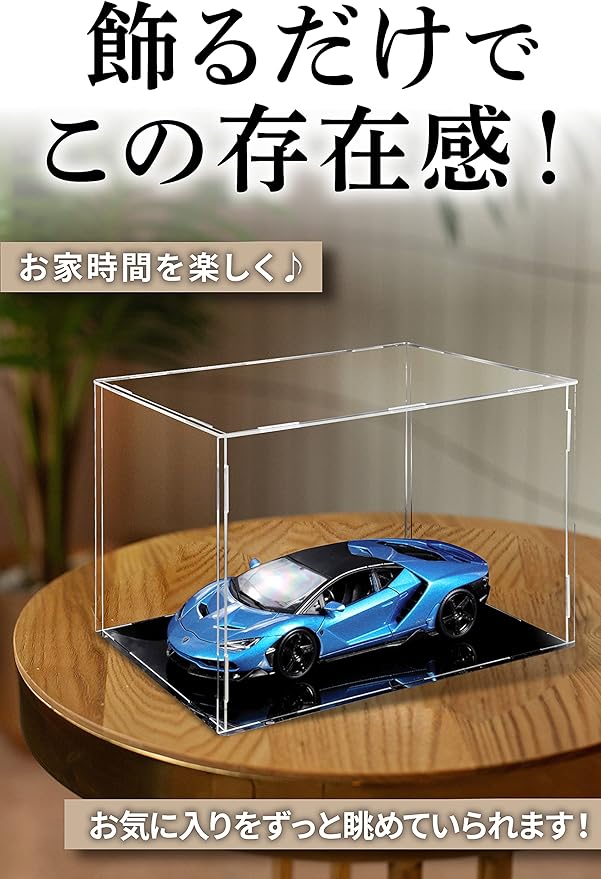 【透明度の高いアクリルを採用】ガラスに近い透明度があり、ガラスより軽くて割れにくくて安全なアクリル製。天井 側面 透明アクリル、台座 黒アクリル。360度から展示品を眺めて楽しむことができます。