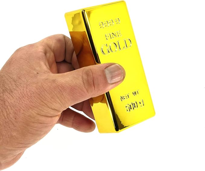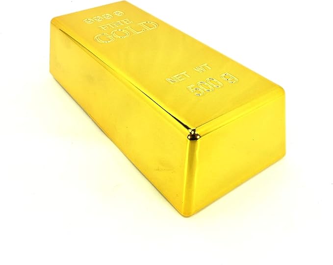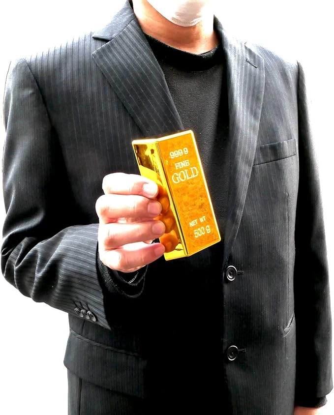 ちょっとしたディスプレイなどにおしゃれな金塊、金のフィギュアです。 おもしろグッズ、ユニークグッズ、なんちゃって商品です。 大きいサイズで迫力があります。 500gと金塊に書いてありますが、実際は40g程度です。(笑) 金運を期待してゴールドバー、インテリアオブジェにアイデア次第で金のグッズとして、お部屋をゴージャスにおしゃれに演出してみてはいかがでしょうか。 サイズ 約 11.2x5x3.2cm 重さ 約 40g