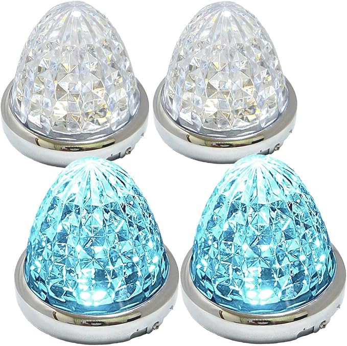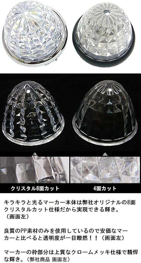 Customize 24V トラック用 LED マーカーランプ サイド マーカー 8面クリスタルカット仕様 16LED メッキリング 汎用 4個 セット ブルー/イエロー/レッド/ホワイト 各色 (アイスブルー 特注色) | oioioichan