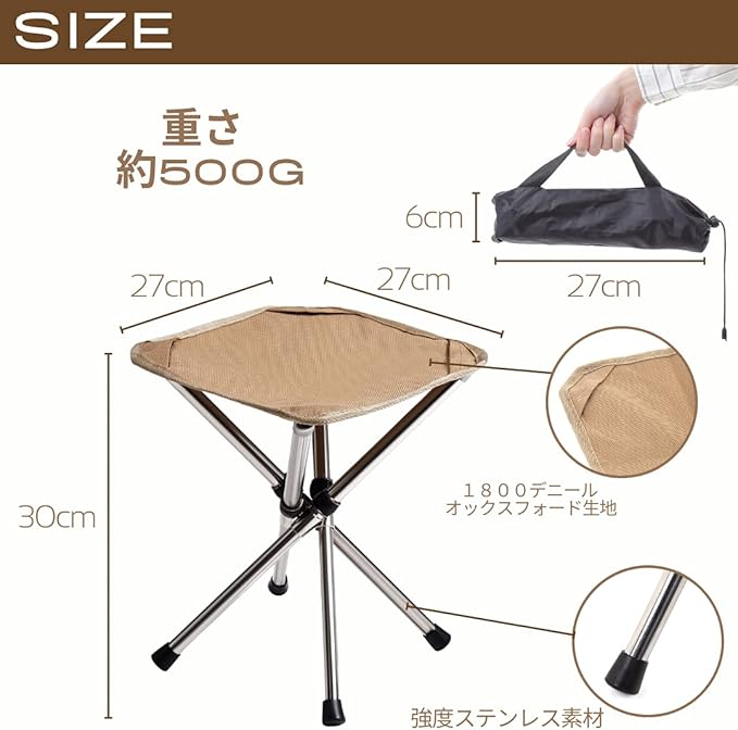 【快適に座れるサイズ】座面の高さは30cm。大人も子供も快適に座れる高さです。素材は耐久性に優れたオックス布です。