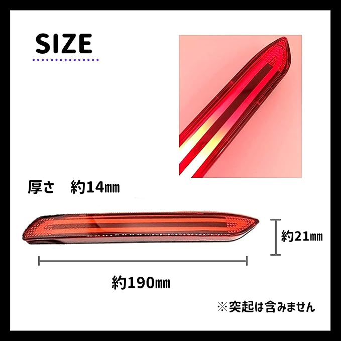 電圧:DC12V専用 電力: 12V*0.12A(スモール)/12V*0.20A(ブレーキ) 発光色: レッド(スモール/ブレーキ)