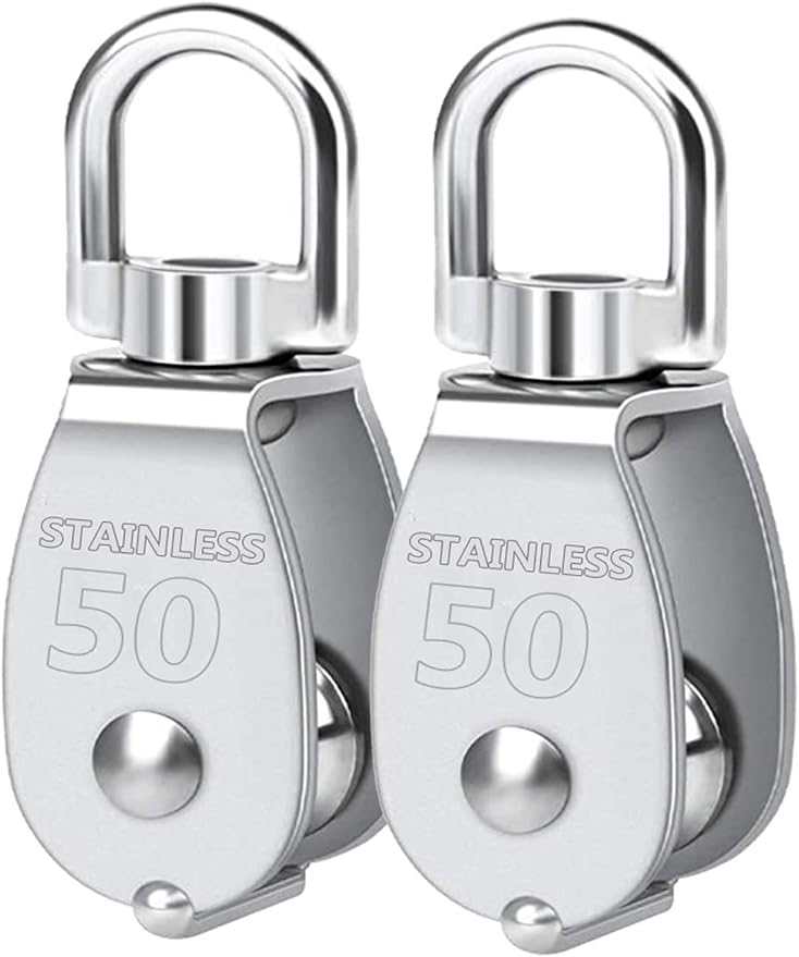 【実用的なデザイン】クレーン滑車装置は一種の巻上げ工具で、綱車とも呼ばれ、車軸での車輪またはその周囲に2つのフランジの間で溝のある軸で構成された機構です。ユニークな360度回転設計により、ロープの結び目を防ぎ、使いやすい, 滑らかなロープ滑車が優れたロープトラバースを実現。