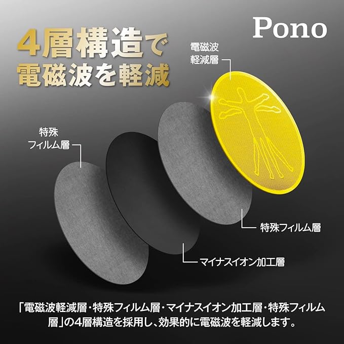 Pono 電磁波防止シール 電磁波遮断シート 電磁波遮断ステッカー 電磁波予防シール 電磁波対策 99%遮断 電磁波吸収カット スマートフォン パソコン iPad iphone EMR/EMF対策 (4枚セット) | oioioichan