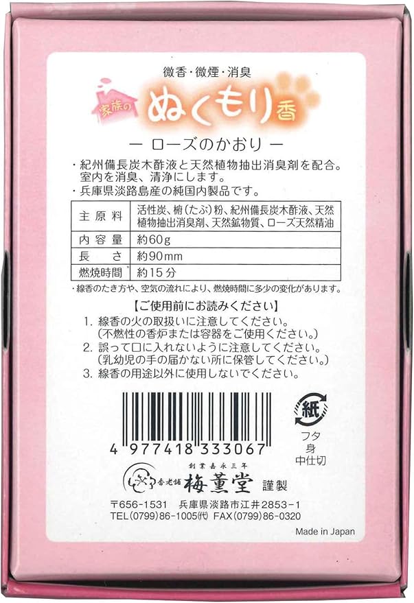 梅薫堂 家族のぬくもり香 ローズのかおり/愛玩動物 ペット供養 日本製 国産 淡路島 ばいくんどう 線香 お線香 御香 お香 家庭用 実用 仏壇 仏事 葬儀 法事 法要 お盆 お彼岸 ギフト 贈り物 贈答 香り 供養 遺族 高級線香 煙の少ない ローズ 煙少 消臭 清浄 | oioioichan