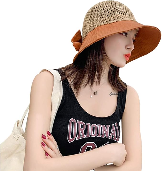 大きなメッシュを編んてきたレディース麦わら帽子、通気性がよくて夏てもムレ感がなく涼しい使用感が実現できます。編み柄が可愛いし、後ろには大きなリボンが付いており、女性らしいハット帽子です。