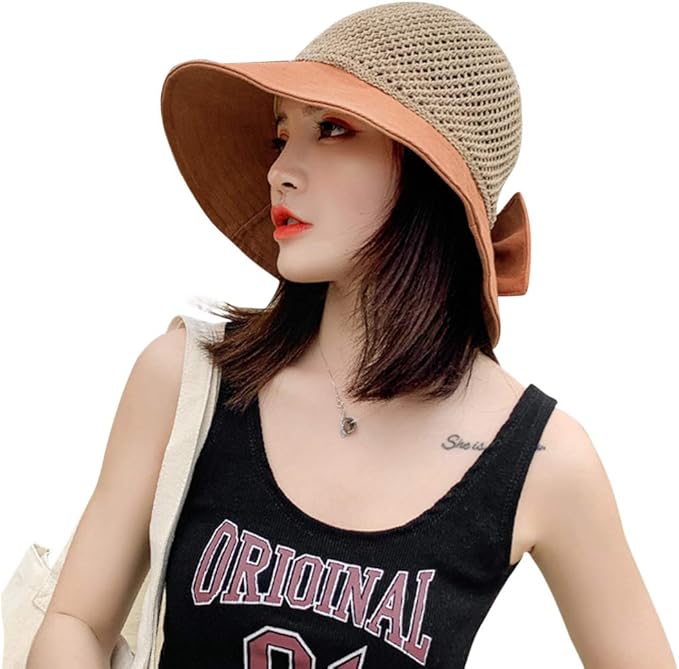 [FakeFace] 帽子 レディース UVカット ハット 大きなリボン付き 麦わら帽子 キャップ 春夏 日よけ帽子 紫外線対策 女性 つば広ハット 女優帽 小顔効果 紐付き サイズ調節可能 折りたたみ | oioioichan