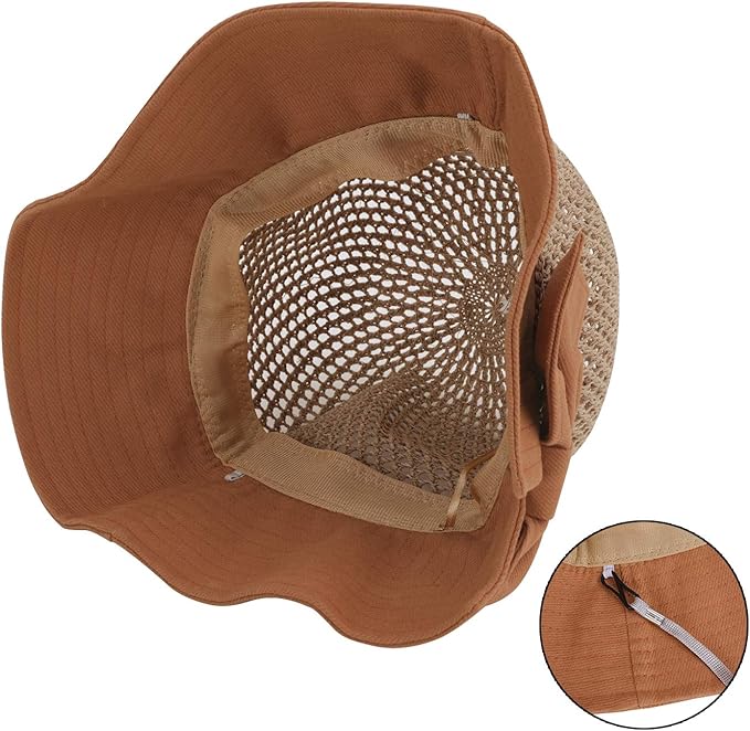 内側には細いリボンが付いており、帽子のサイズが自分の頭にぴったりに調整ができます。頭の小さい方から大きい方までご利用いただけます。汗止めバンドもあり、吸湿だけではなく、継ぎ目を隠して違和感がありません。