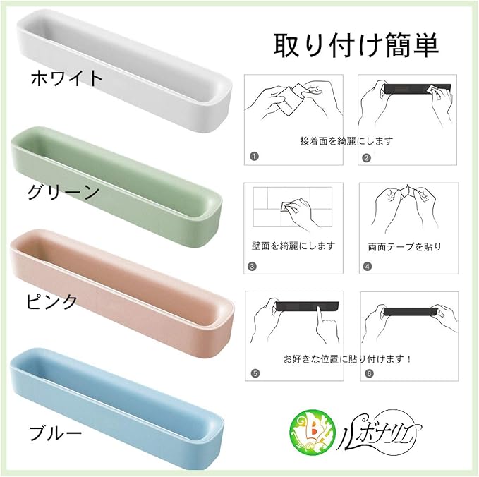 取付方法はとっても簡単。本体を両面テープで貼り付けるだけ。貼り付け次第でお部屋のアクセントとしてもご利用いただけます。
