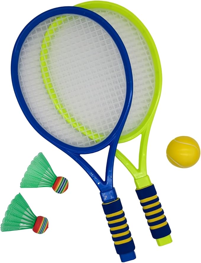 ラケットセットには最初から軽くてコンパクトなラケットが2つと柔らかボールが1つ、バトミントン遊び用に羽が2つ付いているので、 すぐに遊べます。コンパクトサイズのラケットと柔らかボールだから小さなお子様でもチャレンジしやすいセットです。