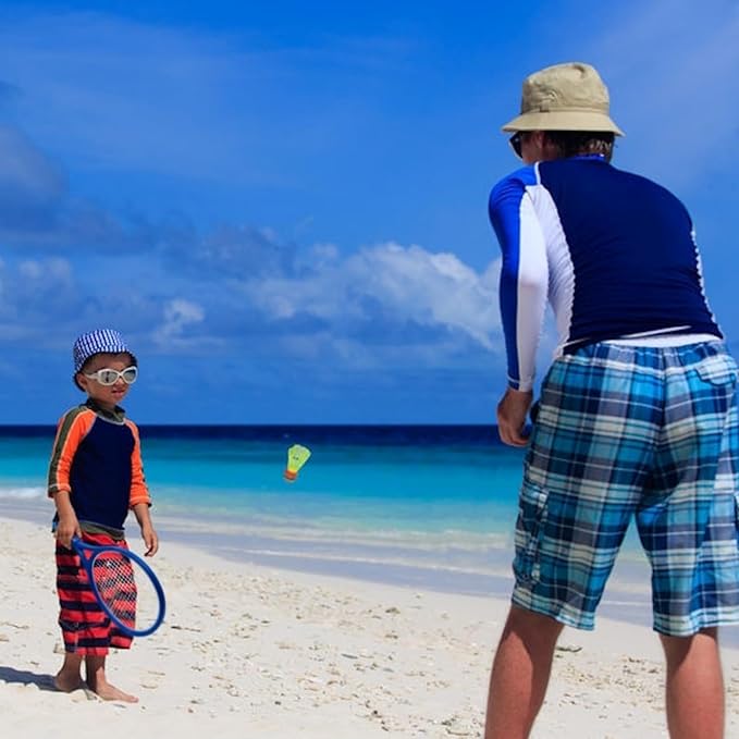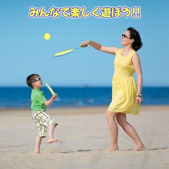 ラケットセットはコンパクトサイズだから公園や海岸ちょっとした広場などに持ち運んで気軽に遊ぶことが出来る便利アイテムです。 もちろんちょっとしたスペースがあれば室内でもOK!親子でファミリーで友達同士で楽しくワイワイ遊べる商品です。