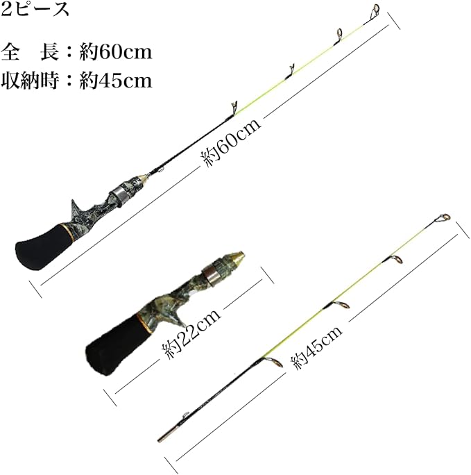 2ピース式ですので簡単に組み立てられ、本格的な穴釣り師の方や初心者の入門釣りなどにも最適です。