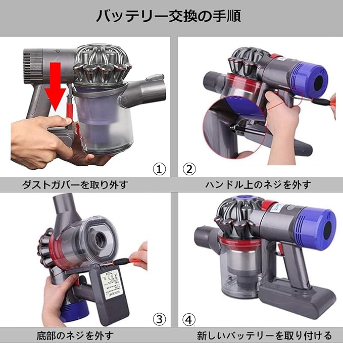 【対応型番】V8 Fluffy、V8 Fluffy+、V8 Absolute、V8 Absolute Extra、V8 Animalpro、V8 MotorheadなどV8全機種と交換性があり、壁掛けブラケットにも対応。【ご注意】「SV10 ≠ V10」、SV10はV8シリーズの掃除機であり、V10はSV12 V10シリーズです。お手持ちの型番をご確認ください。