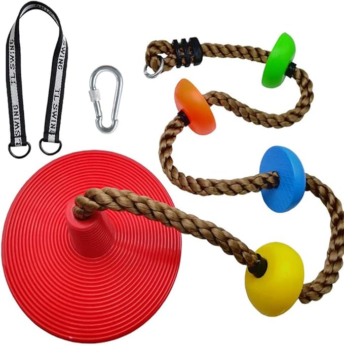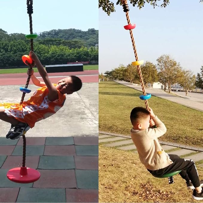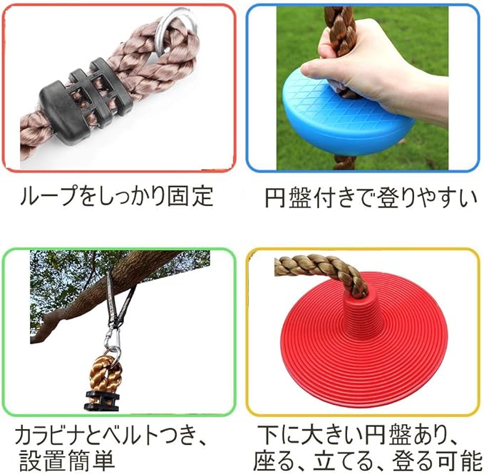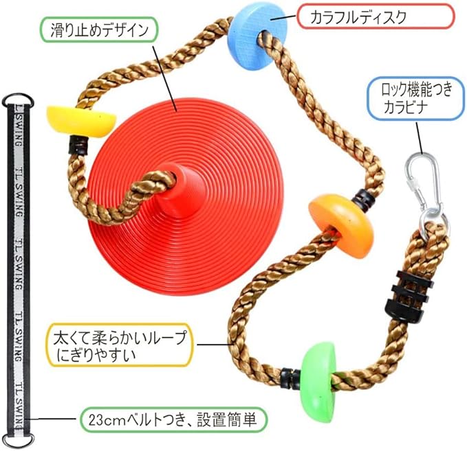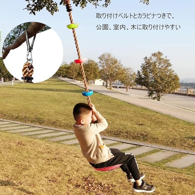 Farfly 最新型 ターザンロープ 子供 5つディスク ロープ遊具 2m ベルト&カラビナつき クライミングロープ 耐荷重150kg 公園 アウトドア ノットロープ 登り綱 登り用練習 マルチカラー | oioioichan