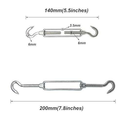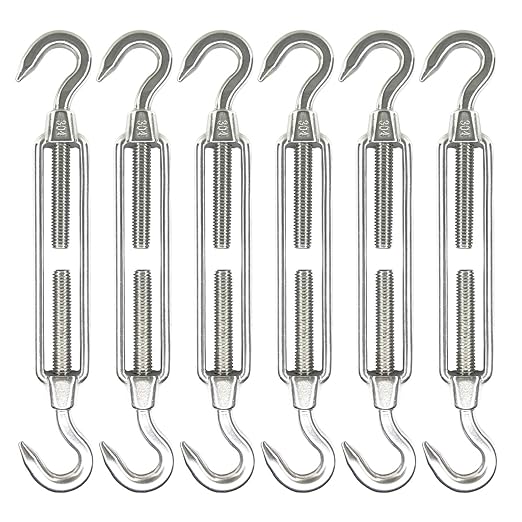 HEVERP 6Pcs M6 Stainless Steel Hook & Hook Turnbuckle Light Duty Wire Rope Tension/Double Hooks | oioioichan