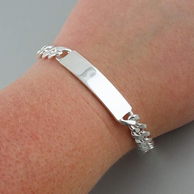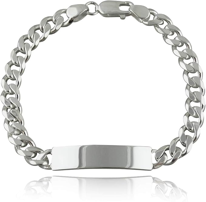 FashionJunkie4Life メンズカーブチェーン識別IDブレスレット、ステンレススチール, 9 inch, 金属