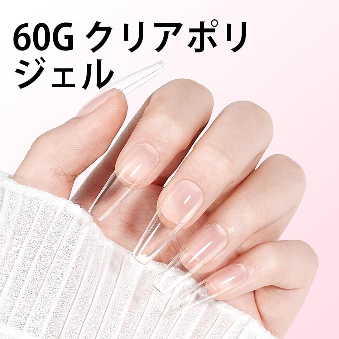 【アクリルの刺激臭がない&たっぷり大容量60g!】刺激臭がなく快適な施が可能です。ポリジェルは十本単位での使用が多いためたっぷり使用まで60gをご用意いたしました。コツを掴むまでたくさん練習もできる。