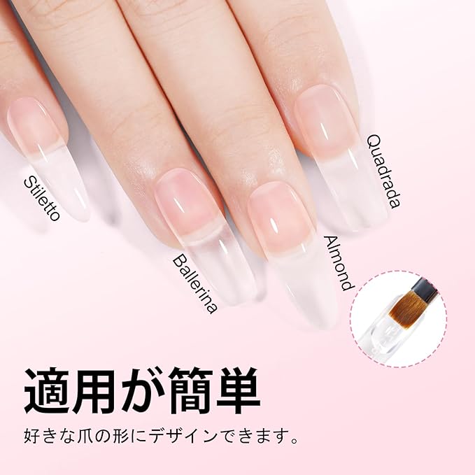 【綺麗になる】長さ出しジェルは可愛いネイルをしたい!けど爪の長さが...そんな方にぴったり!爪が長いことで指が長く見え、手全体を美しく見せることができる!塗りやすいので、初心者の方にもお薦めします。自宅でもネイルサロンをお手軽に楽しめます。