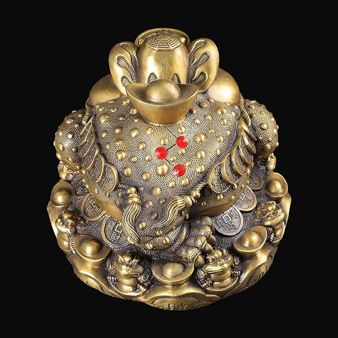 この三本脚の銭蛙には幸運を招く力、財を集める力があると言われており、1本の後ろ足を軸にして、クルッと円を描くように回り、三本の脚で自分の前方と左右にある「財」をすべてかき集めるという意味を持っています。