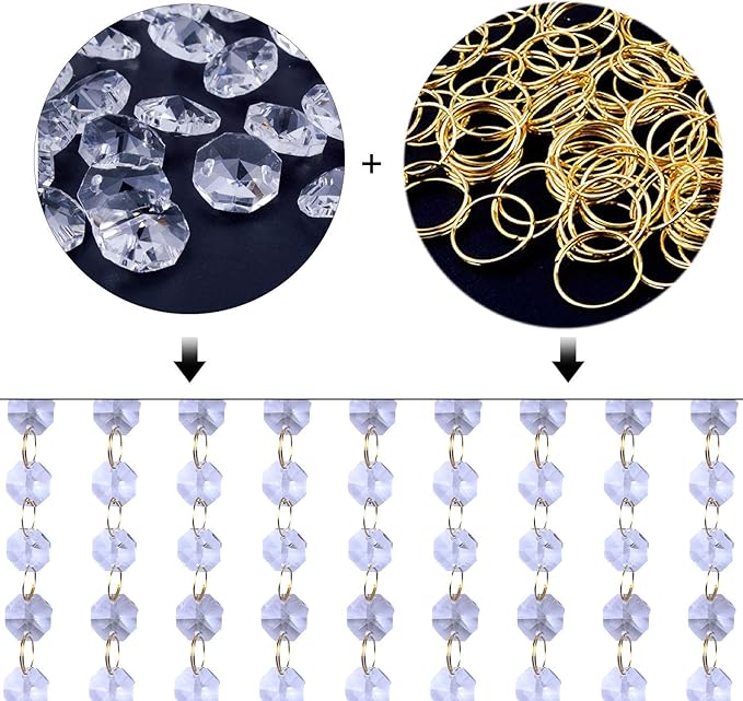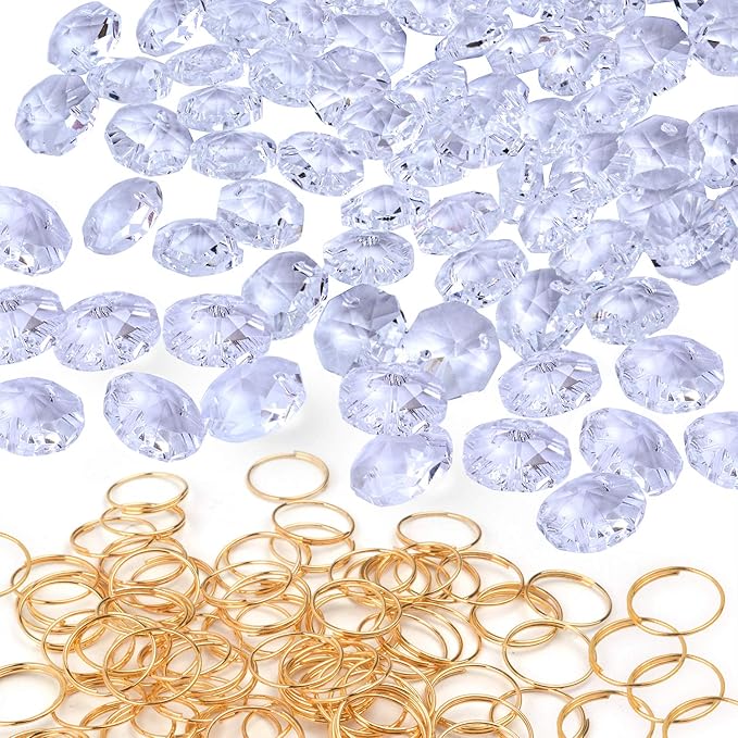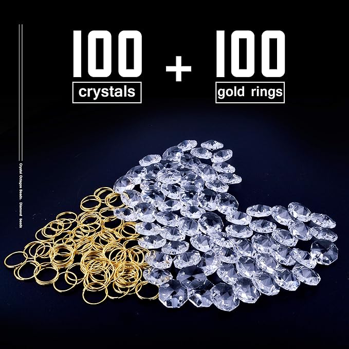 クリスタル八角形ビーズ100個+ゴールドスプリットリング100個。