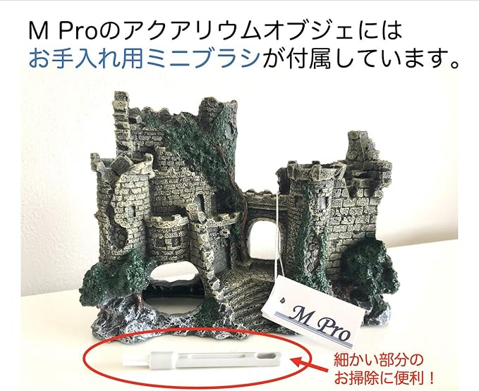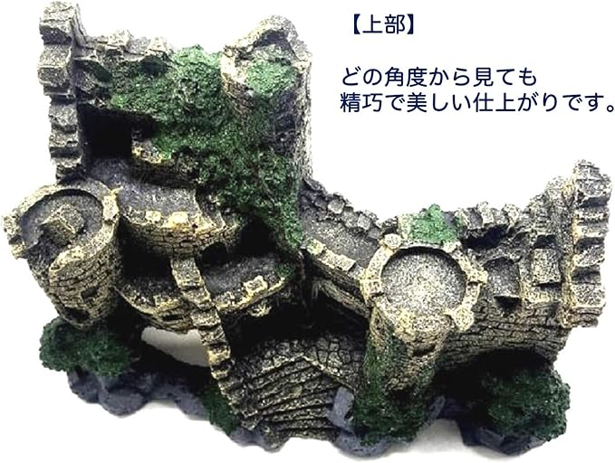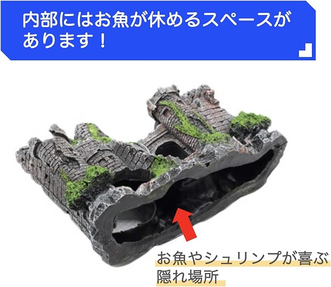 高級感のある丁寧な造りとリアルな色合いが人気のアクアリウムオーナメントです。古城の内部にはお魚やシュリンプがゆっくり休めるスペースがあり、おしゃれなだけでなく実用性のあるオブジェとなっています。
