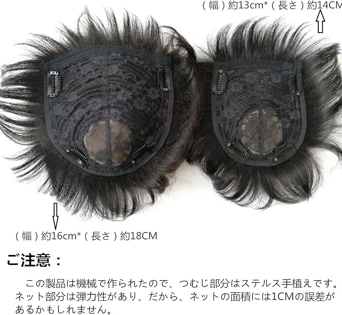 サイズ:(幅)約16cm (長さ)約18cm カラー:天然黒。掲載写真は実物を撮影したものです。ご自分の好みによってスタイリング剤で髪型をしてもいいよ。
