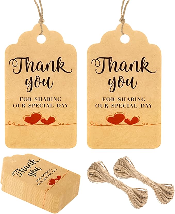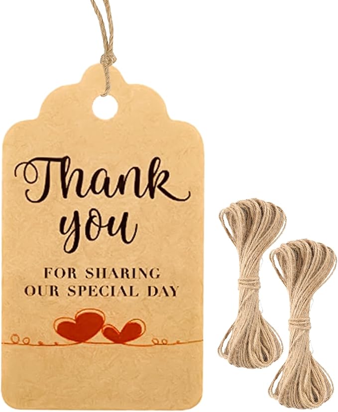 G2PLUS サンキュータグ 100個入り ウェディング記念品 タグ Thank You Sharing Our Special Day Tags クラフト紙 サンキューギフトタグ 紐付き ギフトラッピング 誕生日 ベビーシャワー パーティーの記念品に | oioioichan