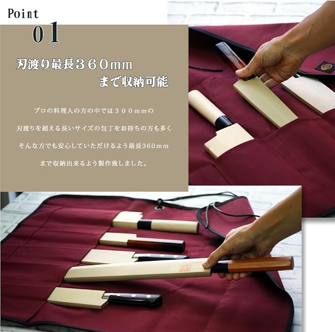包丁収納本数:6本 材質:本体 綿100% 紐 アクリル 画像の包丁及びサヤは付いていません。