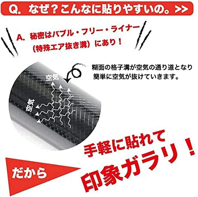【注意事項】 本製品は自動車の一般塗装面用に設計されています。樹脂部のシボ加工など、特殊な表面処理が施された箇所には、貼付かない場合や、一時的に貼付いても数日後に剥がれる恐れがあります。事前に切れ端などで確認の上、ご使用ください。