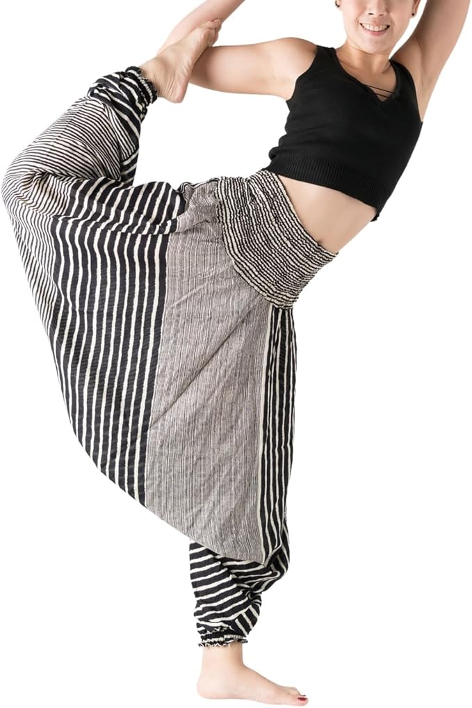Bangkokpants レディース ハーレム パンツ ヒッピーボヘミアン風 ヨガ パンツ ワンサイズ ラインブラック | oioioichan