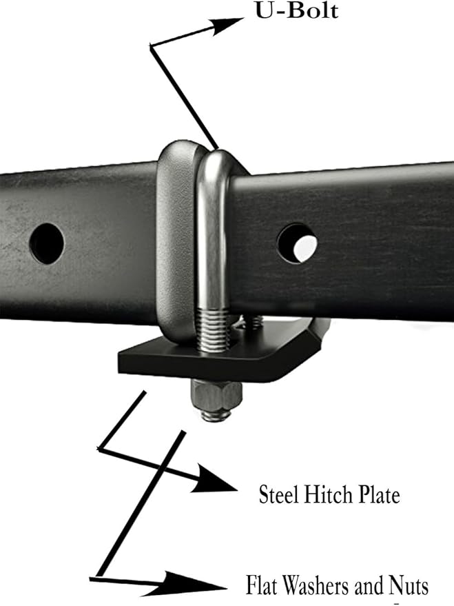 [取り付けは簡単]取り付けは便利で簡単です。レシーバーの上にUボルトをはめ、ボルトに締めプレートをスライドさせ、しっかりと締めて固定してください。簡単な3ステップだけ、10分未満で終わります。