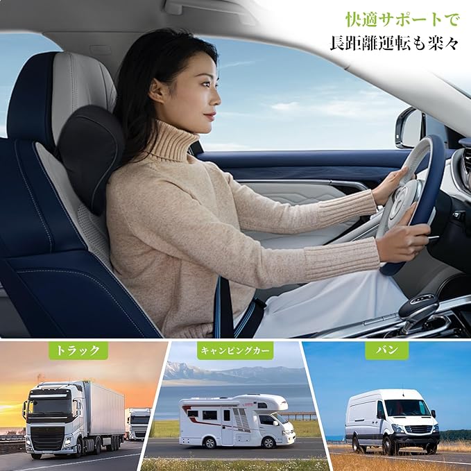 【圧力吸収で快適サポート】 に基づいた谷型デザインが首元のS字カーブをしっかり支え、頸椎と頭部の安定性を強化。柔らかくしっかりとしたクッション性で、長時間のドライブも快適です。