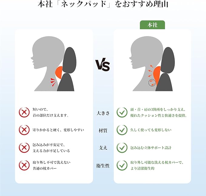 【頭・首・肩を同時にサポート】 高密度の低反発ウレタンフォームを採用し、厚み約13cmのパッドが頭・首・肩の3点を包み込み、圧力を均一に分散。長時間の運転やゲーム、仕事、勉強、または疲れやすい方に適した設計です。
