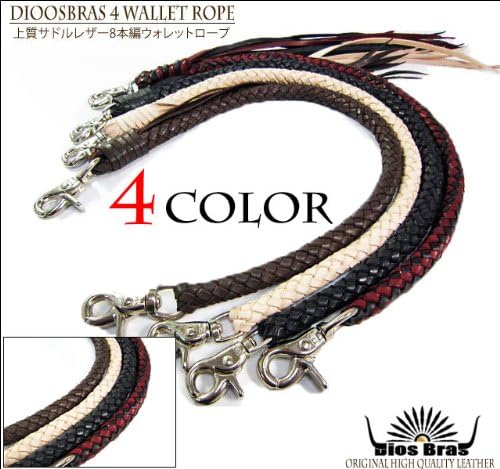 サドルレザーを使用し,8本編みで編みこんだウォレットロープです。色はタン、茶、黒、黒&赤からお選び頂けます。