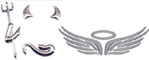 MIAOKASI 立体 3D 小悪魔 & 天使の翼 エンブレム ステッカー シルバー 銀 デビル エンジェルウィング シールセット | oioioichan