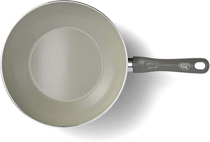 グリーンパン(Greenpan) グリーンシェフ 深型 ウォックパン 28cm IH 対応 セラミック加工 内外面こびり付きにくくてお手入れ簡単 有害物質不使用 アースカラー クオーツグレー | oioioichan