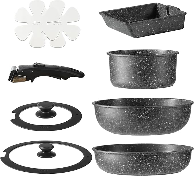 CAROTE カローテ フライパン セット 9点 IH ガス火対応 PFOA PFOS フリー 鍋セット 取っ手のとれる 卵焼き器 マーブルコート スルスルすべる くっつくことがなく手入れ簡単 一年. 黒 ブラック EWシリーズ | oioioichan