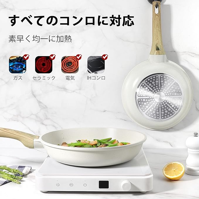 特徴 エルゴノミックハンドル, 電気コンロ対応, IHコンロ対応, ノンスティック, 対応