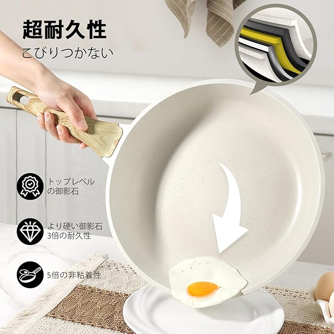 環境に優しいノンスティックコーティングフライパン - 5倍の超ノンスティック性能、SGS承認、PFOS/PFOAフリーの組成を備えた環境に優しい御影石調理器具で、より健康的で手間のかからない料理を体験してください