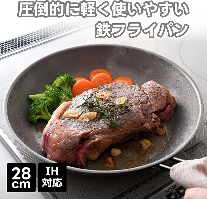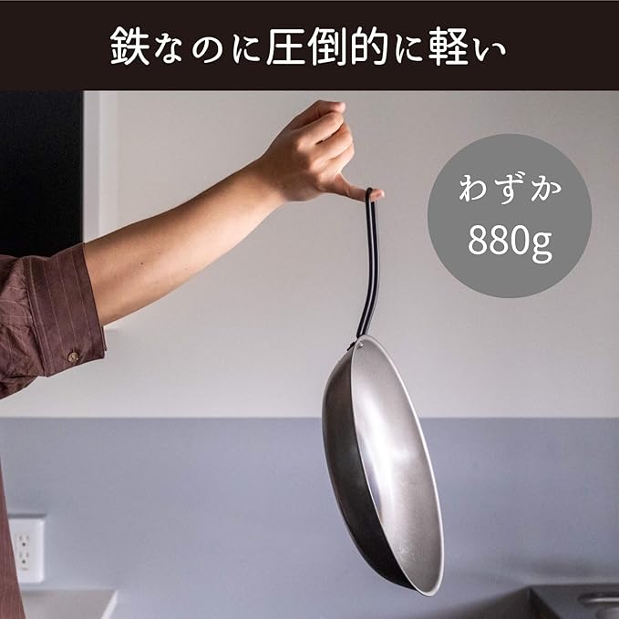 【使いやすさにこだわった鉄製フライパン】鉄製の弱点を克服した、鉄なのに軽くて丈夫で焦げ付きにくいフライパンです。特殊なクリア塗装を施しているため面倒な空焼きは不要で、そのままご使用できます。