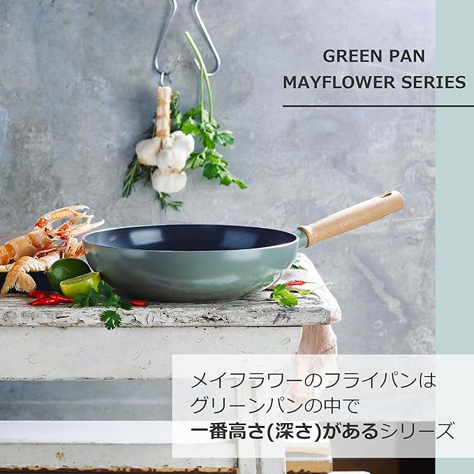グリーンパン GREENPAN フライパン 24cm IH ガス 対応 有害物質不使用 PFASフリー セラミックコーティング 【メイフラワー】 こびりつきにくい 汚れが落としやすい 少し深め 天然木ハンドル CC001897-001 | oioioichan