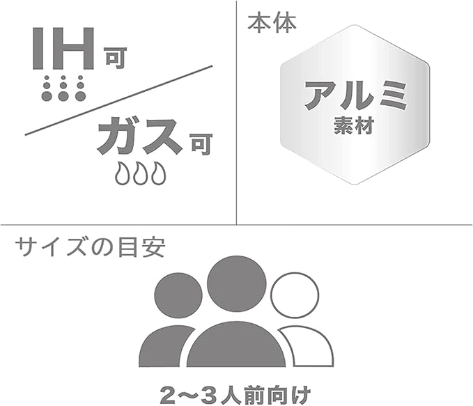充分な厚みのあるアルミ素材の底部は熱を素早く、均一に伝えます。