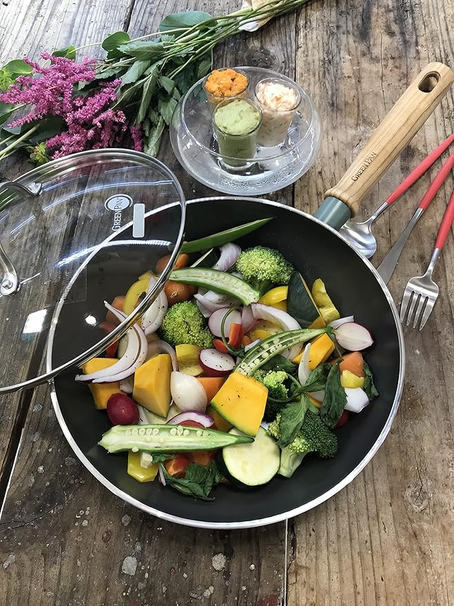当社の製品はいかなる有毒ガス、持続性汚染物質も排出せず、PFOA(ペルフルオロオクタン酸)、PFAS(ペルフルオロアルキルスルホン酸)、鉛やカドミウムも含んでいません。これは私たちの誇りです。グリーンパンで、自信を持ってヘルシーな食事をつくってください。