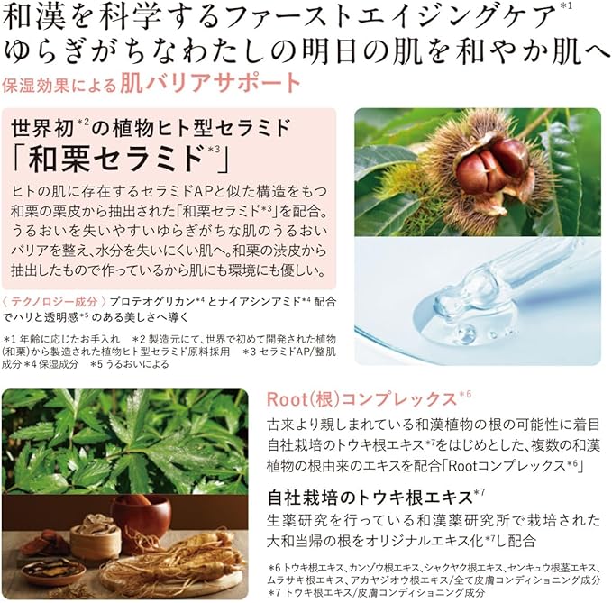 有効成分 ナイアシンアミド, プロテオグリカン, 和栗由来の植物ヒト型セラミド