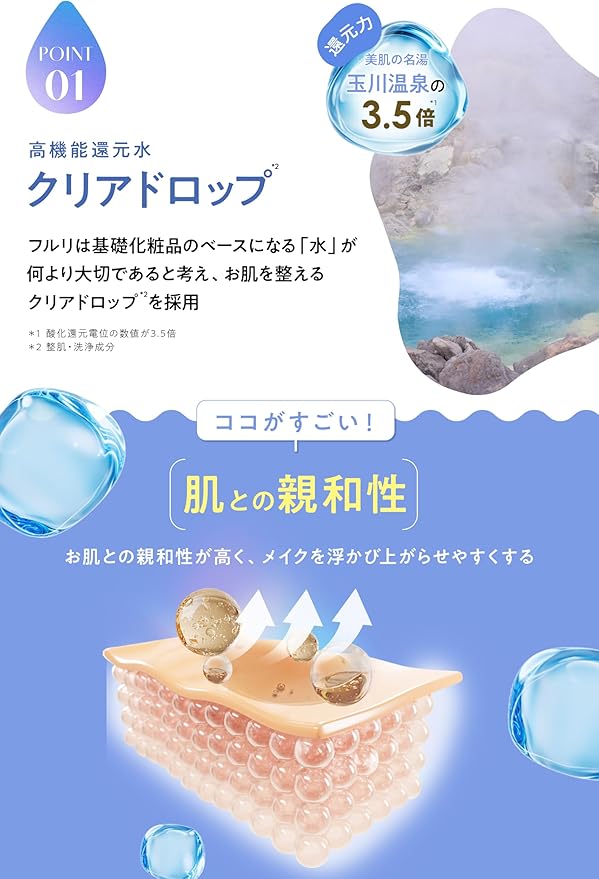 【毛穴ケア* に着目したクレンジングジェル】高機能還元水「クリアドロップ* 」をベースに使用。肌との親和性が高く、メイクを浮かび上がらせやすくします。毛穴に蓄積した汚れや黒ずみ* をこすらず吸着除去し、透明感*⁴のある素肌へ導きます。 *1毛穴の汚れを落とすこと*2整肌洗浄作用*3汚れや古い角質による*4洗浄効果による